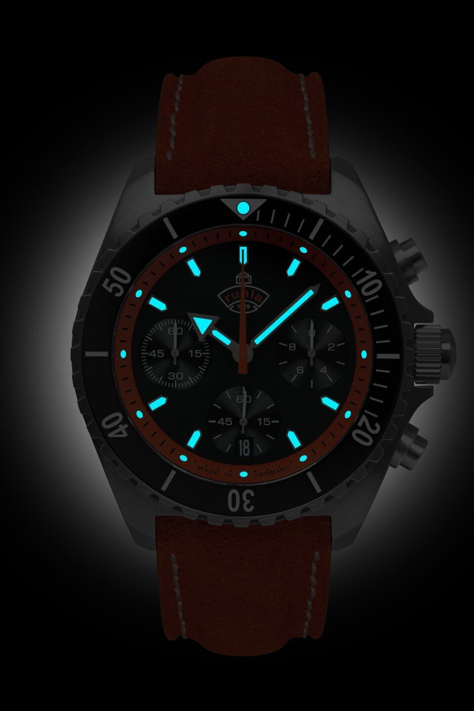 Ruhla GLASBACH CUP quartz chronograph with water-resistant leather strap